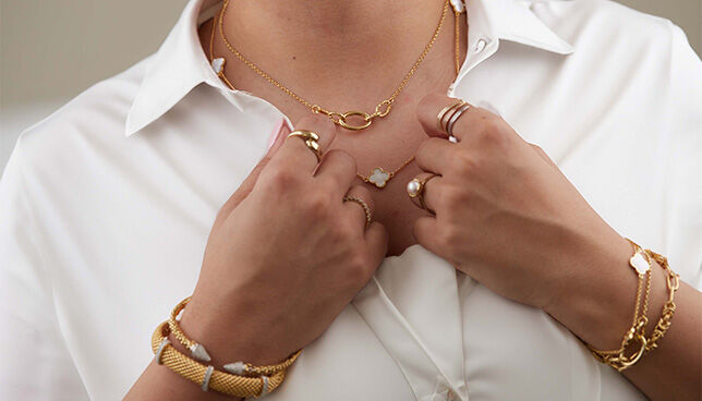 If you're looking for a gift for her that’s more for the fashion-forward lover, then a gold statement ring or necklace is a stylish accessory that offers a simpler and more classic look that they’ll love.