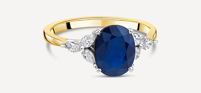 The beauty of this ring lies in its thoughtful complexity. An oval sapphire takes centre stage while pear and marquise diamonds on either side create a beautiful vintage-inspired finish. The yellow gold finish will complement other warm-toned jewellery in your stack, or mix and match with other colourful gemstones to create a treasure trove stack.