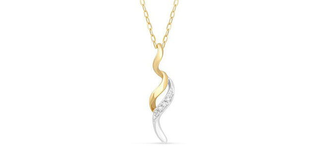 There's something captivating about jewellery that moves like water, and this wave pendant does exactly that. Pavé diamonds follow the flowing curve, creating continuous sparkle that catch the light as you move. The mixed metal finish brings a distinctly modern touch - making this pendant easy to style with everything in your existing collection, from yellow gold studs to a white gold bracelet.