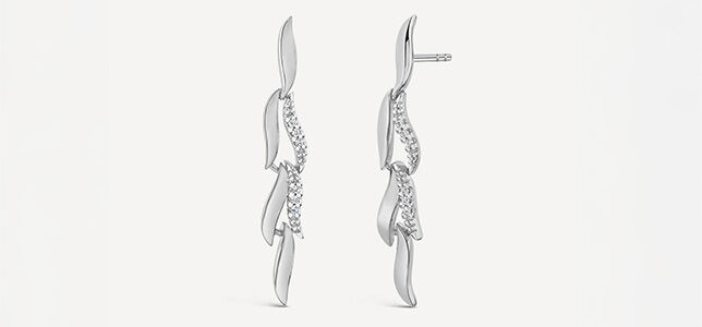 These drop earrings bring a touch of organic beauty to formal occasions without compromising on elegance. The polished petal design feels fresh and feminine, while strategically placed diamonds add just enough sparkle to complement an evening gown. The drop design creates graceful movement as you mingle and dance, with subtle light play that enhances your overall look without competing with any statement necklaces or dramatic dress details.