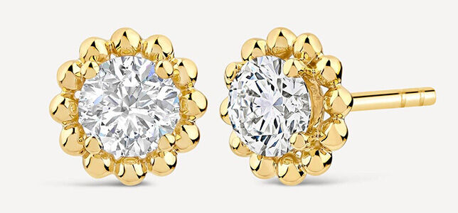 When your kind of New Year’s party involves dancing, you’d better make sure your jewellery is ready to dazzle as you move. The Born Granules collection features tiny gold beads that frame each diamond, creating a subtle texture that comes alive under party lights.